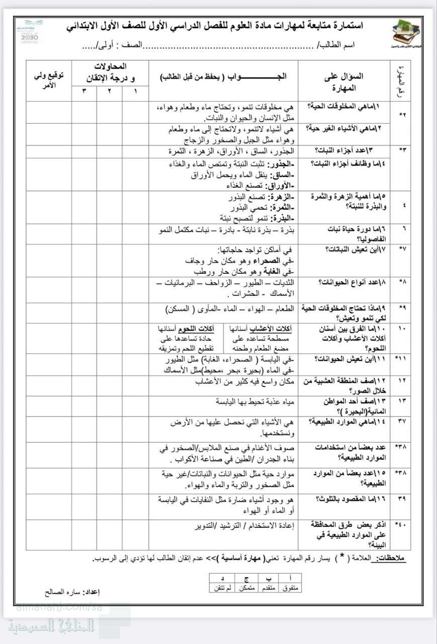 تم إيجاد الملف: استمارة تقييم علوم الفصل الأول 1447ه‍