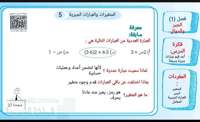 تم إيجاد الملف: عرض بوربوينت المتغيرات و العبارات الجبرية