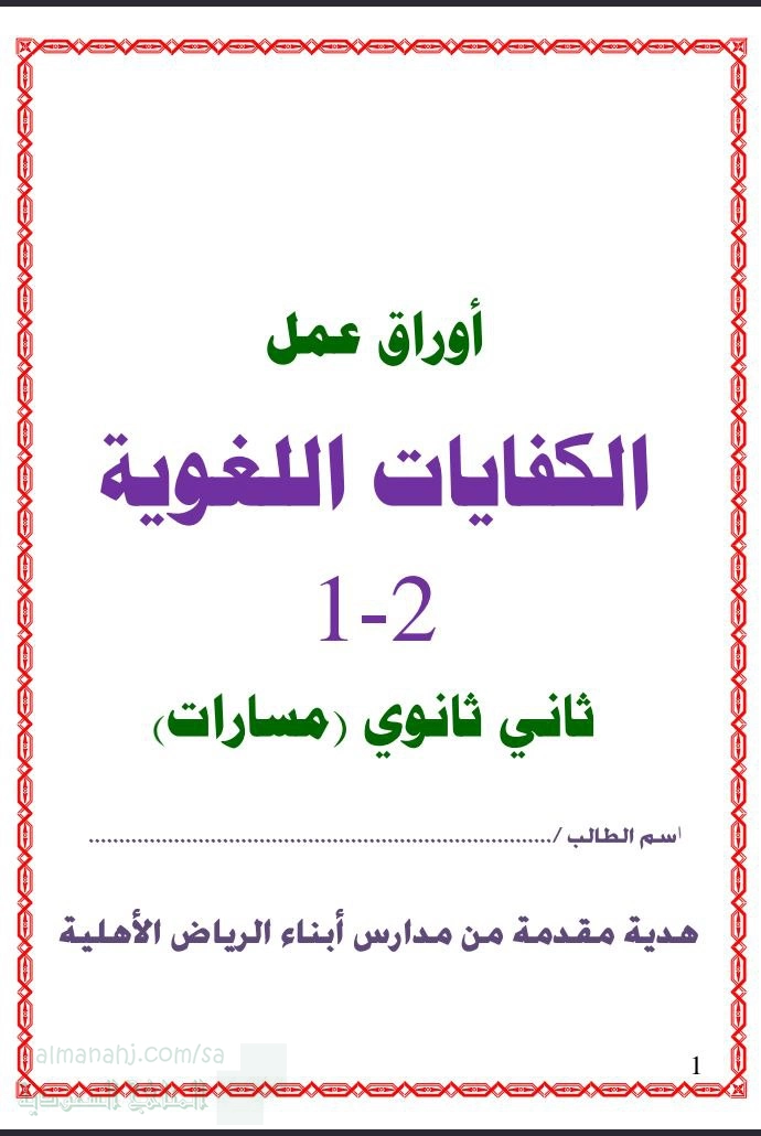 تم إيجاد الملف: أوراق عمل الكفايات اللغوية مسارات للفصل الأول 1447ه‍