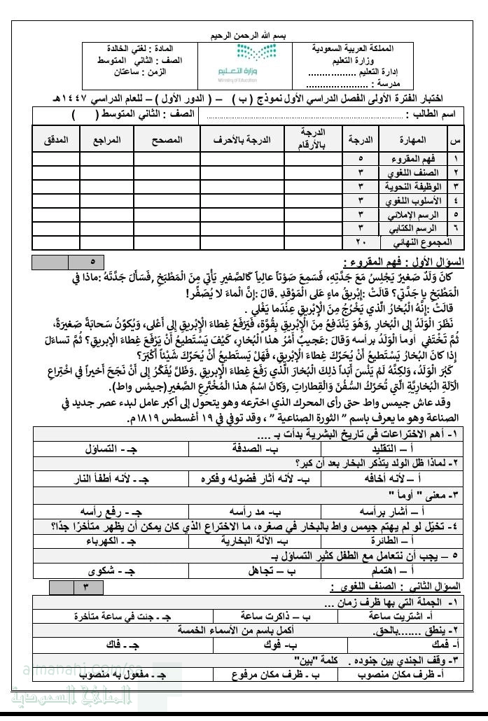 اختبار الفترة الأولى لغتي الخالدة 1447ه‍