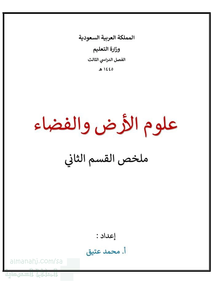 7. الصف الثالث الثانوي, علوم, ملخص القسم الثاني علوم الأرض والفضاء