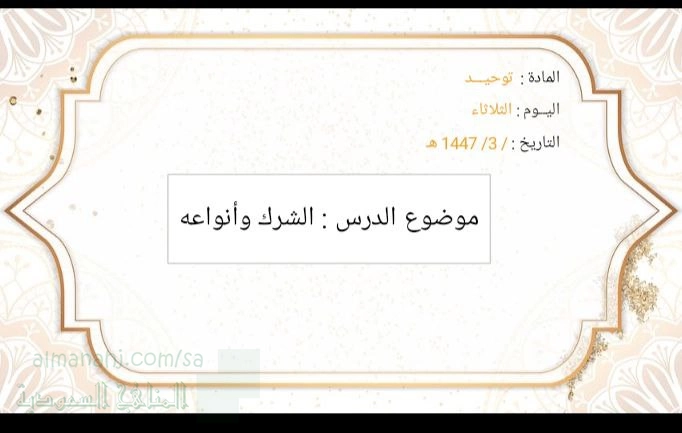 4. دراسات اسلامية, الفصل الأول, 1447_1448, عرض بوربوينت لدرس الشرك وأنواعه