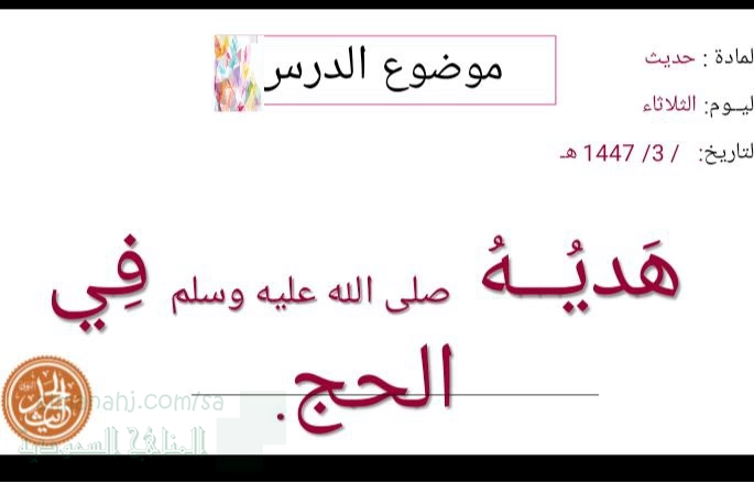 1. دراسات اسلامية, الفصل الأول, 1447ه‍, عرض بوربوينت حديث هديه عليه الصلاة والسلام في الحج