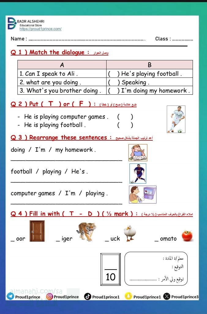 معلومات الملف: تقييم الوحدة الثالثة Things We do من منهج We can 2 مرفقة بنموذج الإجابة الأسئلة شاملة لدروس الوحدة و متنوعة تشمل فراغات، توصيل الحوار، إعادة ترتيب الجملة
