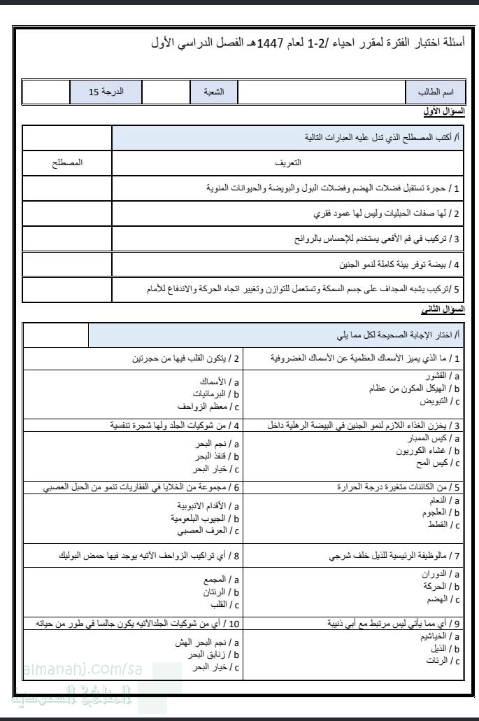 تم إيجاد الملف: اختبارات متنوعة في علم الأحياء 2 مع الحلول