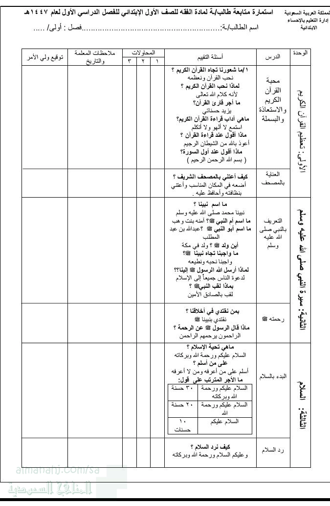 تم إيجاد الملف: استمارة متابعة الفقه للفصل الأول 1447ه‍