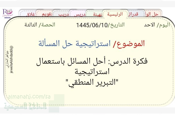 تم إيجاد الملف: عرض بوربوينت استراتيجية حل المسألة التبرير المنطقي
