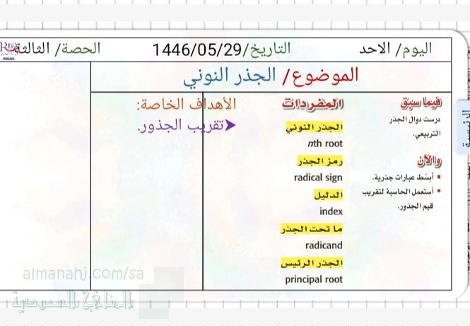 4. الصف الثاني الثانوي, رياضيات, عرض بوربوينت درس الجذر النوني