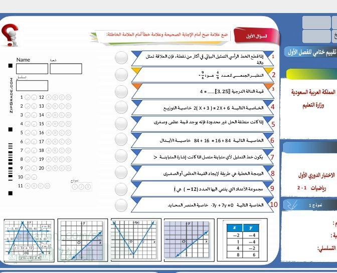 اختبار الباب الأول الدوال والمتباينات الخطية الفترة الدور الأول 1447ه | ||