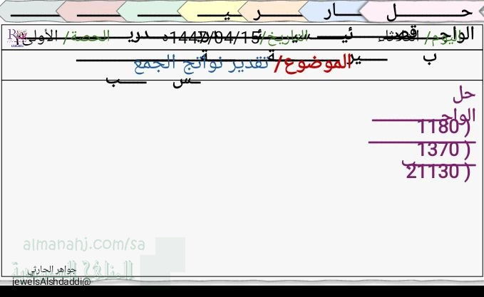8. الصف السادس, رياضيات, اختبار منتصف الفصل الأول 1447ه