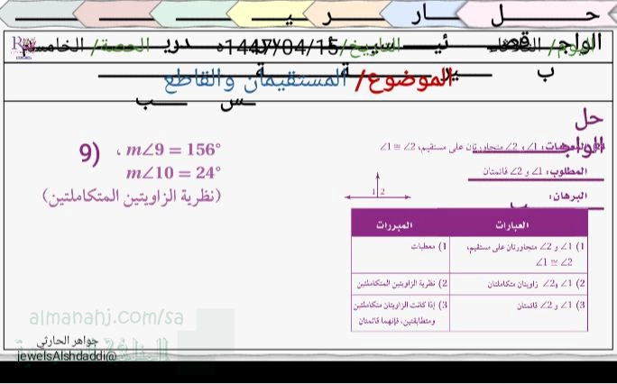 3. الصف الأول الثانوي, رياضيات, عرض بوربوينت درس المستقيمان والقاطع
