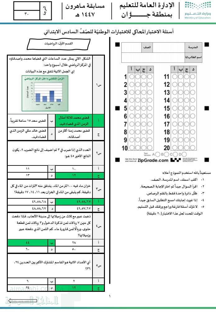 تم إيجاد الملف: نموذج الإجابة على مسابقة ماهرون الاختبار المحاكي للاختبارات الوطنية نافس في منطقة جازان