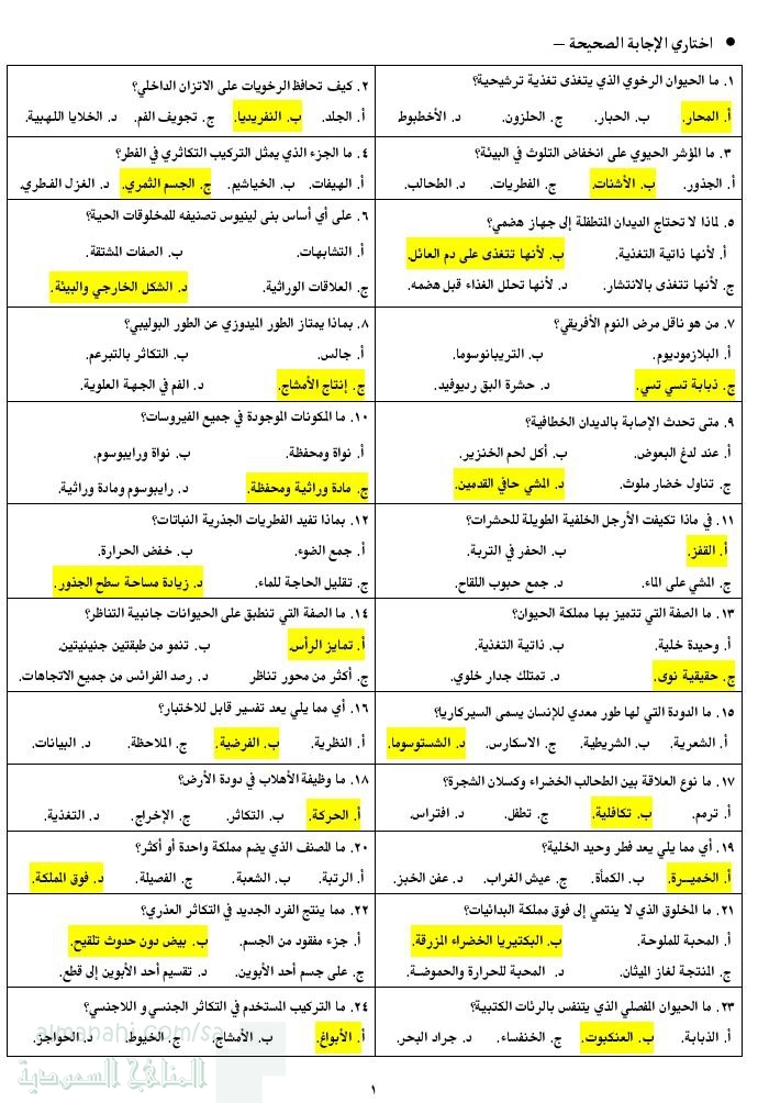 9. الصف الأول الثانوي, علوم, حلول الفصل الثامن المفصليات شامل