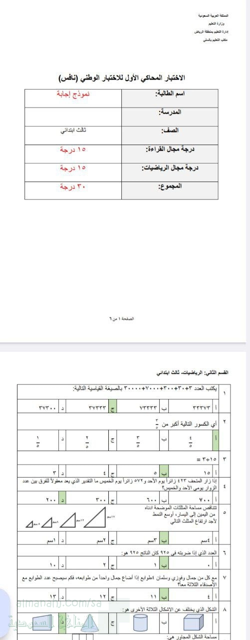 3. رياضيات, الفصل الثاني, 1447_1448 هجري, نافس إجابة نموذج الاختبار الثاني مسابقة ماهرون 1447ه‍ منطقة جازان