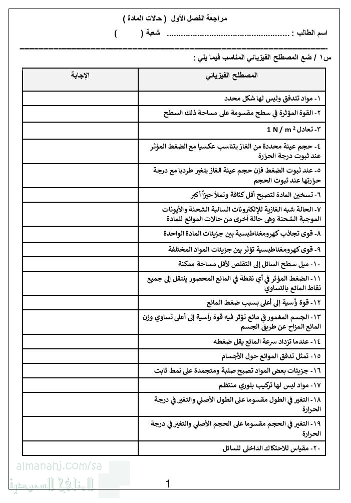 معلومات الملف: مذكرة أوراق عمل و مراجعة شاملة لفصول مقرر فيزياء الفصل الأول 1447ه التالية : _ الفصل الأول: حالات المادة _ الفصل الثاني: الاهتزازت و الموجات _ الفصل الثالث: الصوت _ الفصل الرابع : الضوء _ الفصل الخامس : الانعكاس والمرايا _ الفصل السادس : الانكسار و العدسات _ الفصل السابع التداخل و الحيود _ الفصل الثامن الكهرباء الساكنة _ الفصل التاسع : المجالات الكهربائية مع الاختبار التحصيلي لكل فصل | ||
