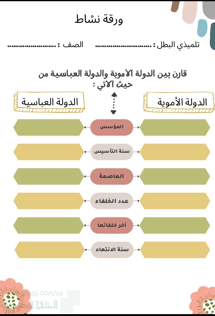 تم إيجاد الملف: منظم مقارنة بين الدولة الأموية و الدولة العباسية