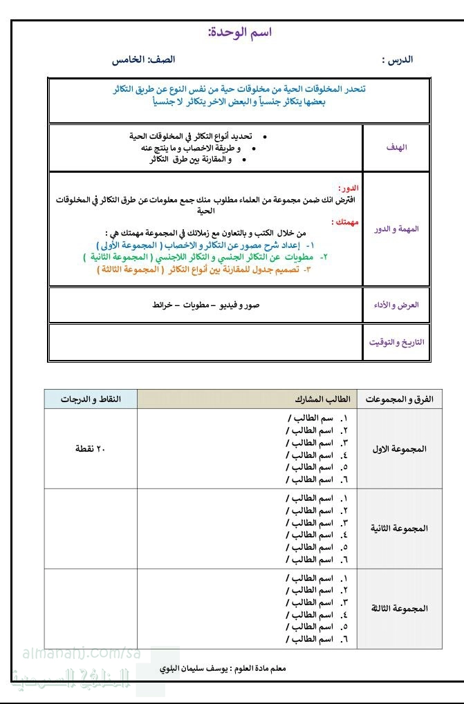 1. علوم, الفصل الأول, 1447_1448, مهمات أدائية درس التكاثر