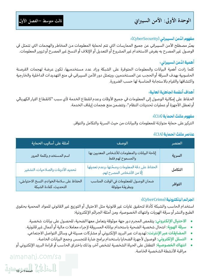 7. الصف الثاني المتوسط, المهارات الرقمية, ملخص منهج الرقمية للفصل الأول 1447ه