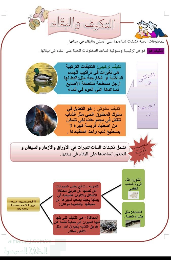 2. الصف الخامس, علوم, ملخص درس التكيف والبقاء