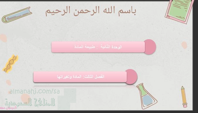اضغط هنا لتحميل وعرض ( عرض بوربوينت التهيئة للفصل الثالث المادة وتغيراتها ) |