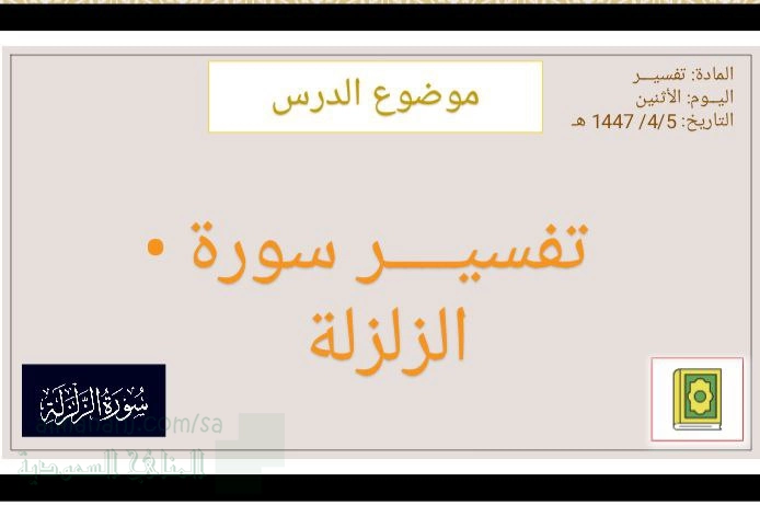 1. دراسات اسلامية, الفصل الأول, 1447_1448, عرض بوربوينت تفسير سورة الزلزلة