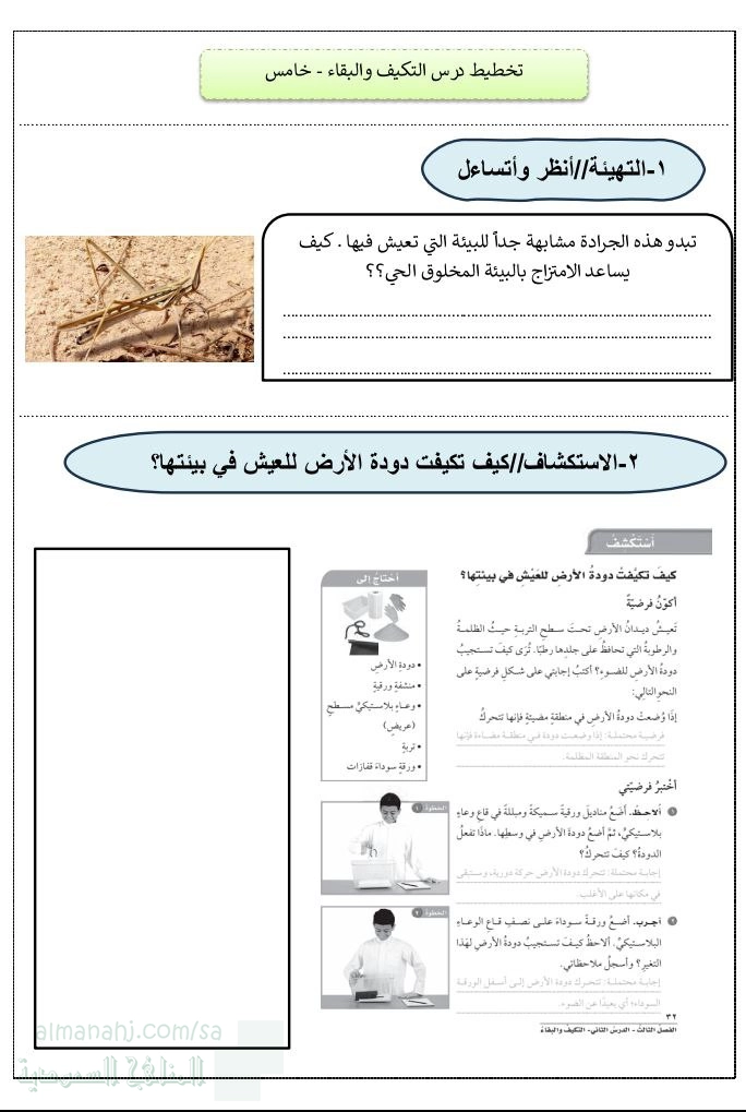 3. الصف الخامس, علوم, تخطيط درس التكيف والبقاء
