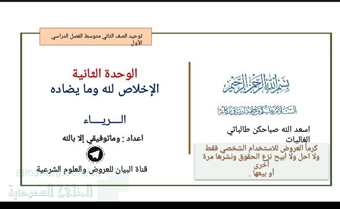اضغط هنا لتحميل وعرض ( عرض بوربوينت درس الرياء توحيد )
