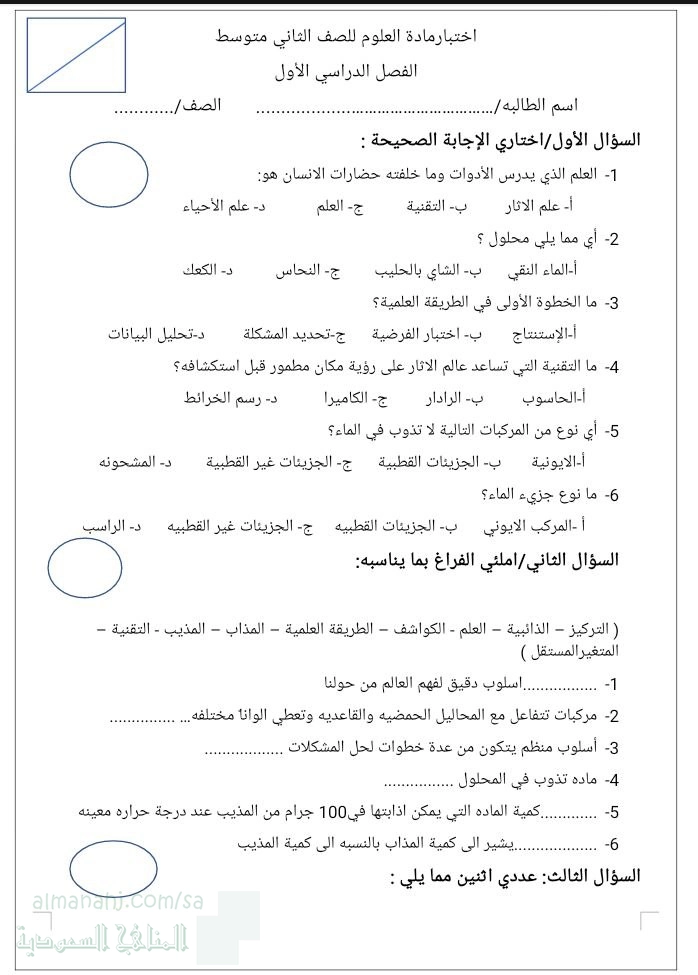 أنت هنا: موقع المناهج ⇦ المناهج السعودية ⇦ الصف الثاني المتوسط ⇦ علوم ⇦ الفصل الأول ⇦ اختبارات |