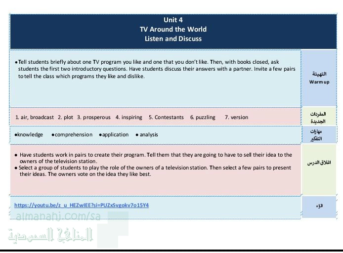 تحضير الوحدة الرابعة TV arround the world - إعداد: انتصار العبيد الله | ||