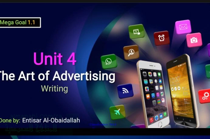 تم إيجاد الملف: عرض بوربوينت للوحدة الرابعة The art of advertisement الكتابة writing
