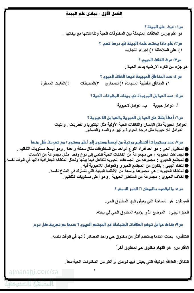 تم إيجاد الملف: ملخص كامل دروس علم البيئة