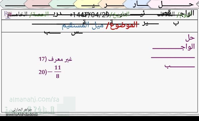 4. الصف الأول الثانوي, رياضيات, عرض بوربوينت للدرس الرابع ميل المستقيم