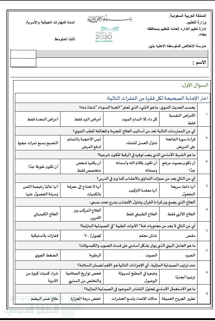 3, ملفات, التربية, سجل توزيع درجات المواد الدراسية لكافة الصفوف 1447ه