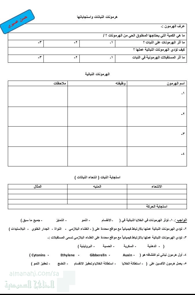 3. الصف الثاني الثانوي, علوم, أسئلة مراجعة درس هرمونات النباتات و استجاباتها غير محلولة