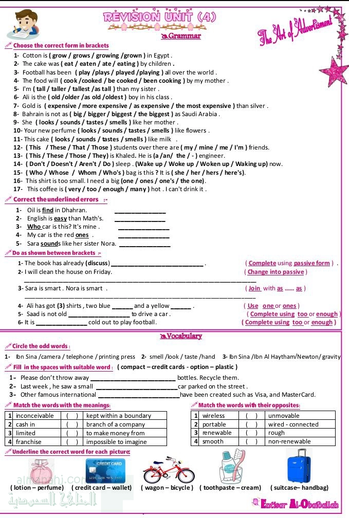 1. الصف الأول الثانوي, لغة انجليزية, مراجعة الوحدة الرابعة The art of advertisement