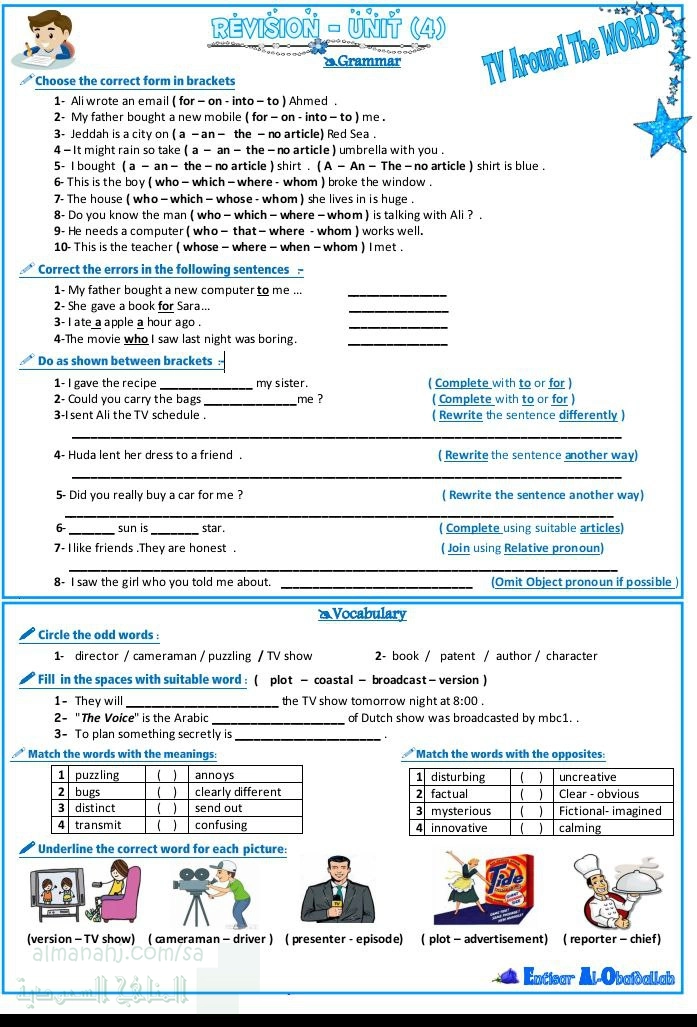 11. الصف الثاني الثانوي, لغة انجليزية, مراجعة الوحدة الرابعة TV arround the world