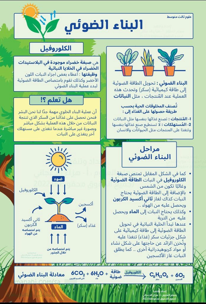1. علوم, الفصل الأول, 1447_1448, ملخص درس البناء الضوئي