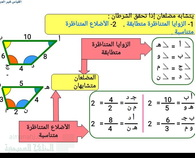 2. رياضيات, الفصل الأول, 1447_1448, عرض بوربوينت لدرس تشابه المضلعات تدرب محلول