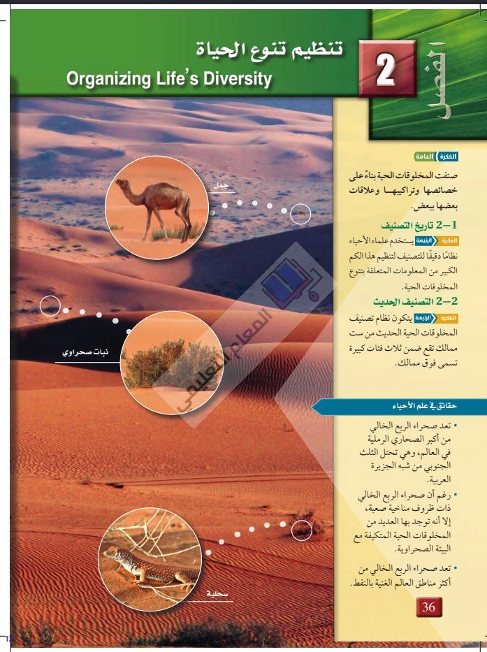 حلول الفصل الثاني تنوع تنظيم الحياة