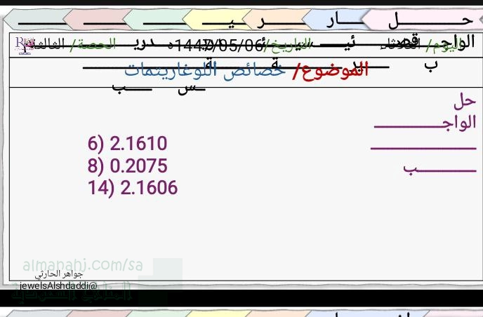1. رياضيات, الفصل الأول, 1447_1448, عرض بوربوينت لدرس خصائص اللوغاريتمات