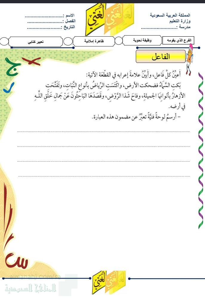 1. الصف الثالث المتوسط, لغة عربية, نماذج أوراق عمل لغتي الخالدة