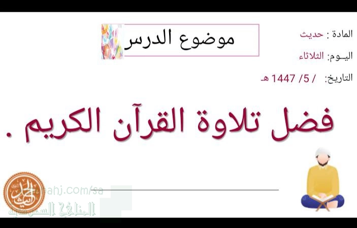 1. دراسات اسلامية, الفصل الأول, 1447_1448, عرض بوربوينت للدرس العاشر حديث فضل تلاوة القرآن الكريم