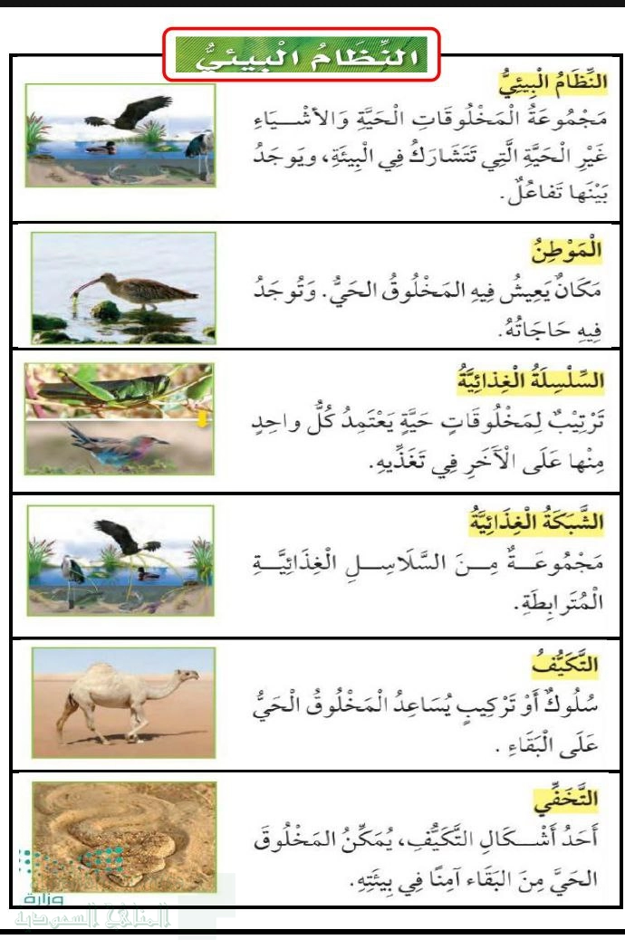 1. علوم, الفصل الأول, 1447_1448, ملخص الفصل الثالث النظام البيئي