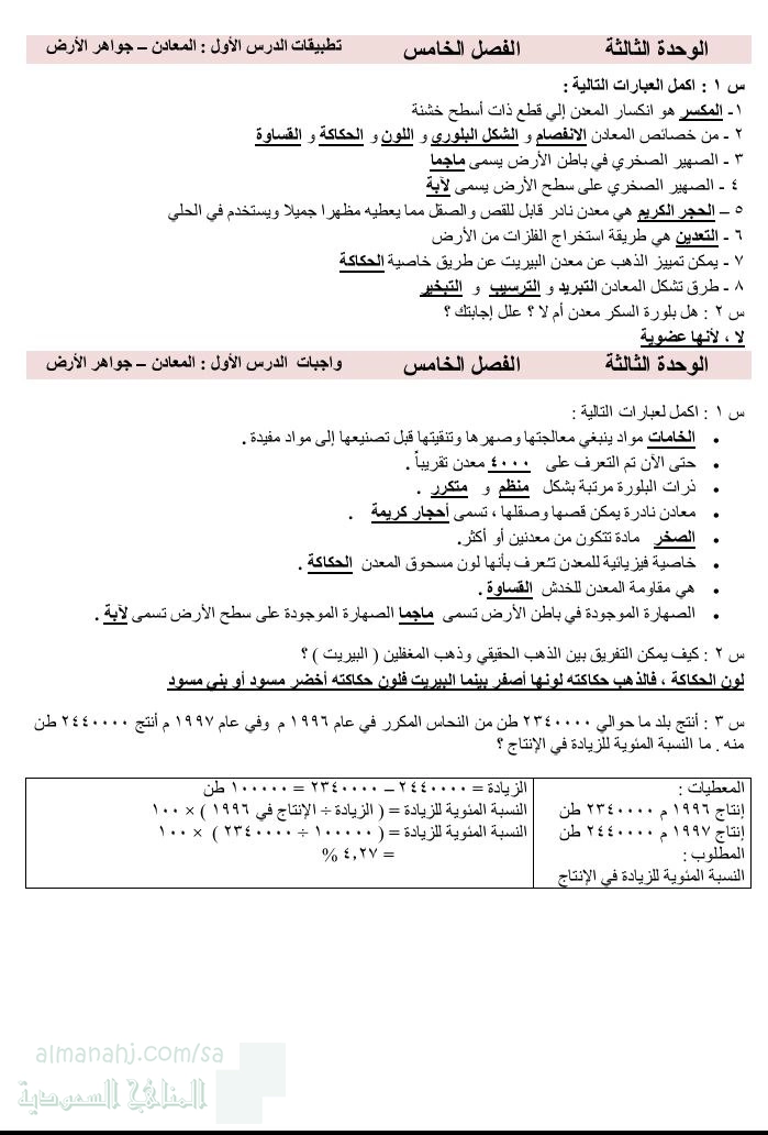 1. علوم, الفصل الأول, 1447_1448, حل الفصل الخامس المعادن والصخور