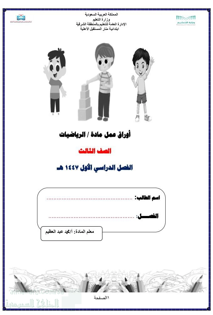 5. الصف الثالث, رياضيات, أوراق عمل شاملة مع المهارات المستهدفة
