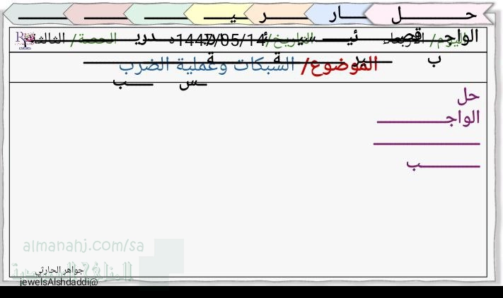 4. الصف الثالث, رياضيات, عرض بوربوينت لدرس الشبكات و عمليات الضرب