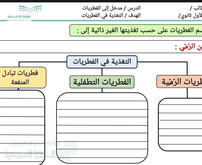 1. علوم, الفصل الأول, 1447_1448, ورقة عمل التغذية في الفطريات