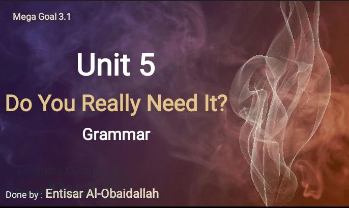 معلومات الملف: عرض بوربوينت الوحدة الخامسة Do you really need it ( قواعد grammer ) objectives من منهج اللغة الإنجليزية Mega goal 3 للفصل الأول من العام 1447ه‍