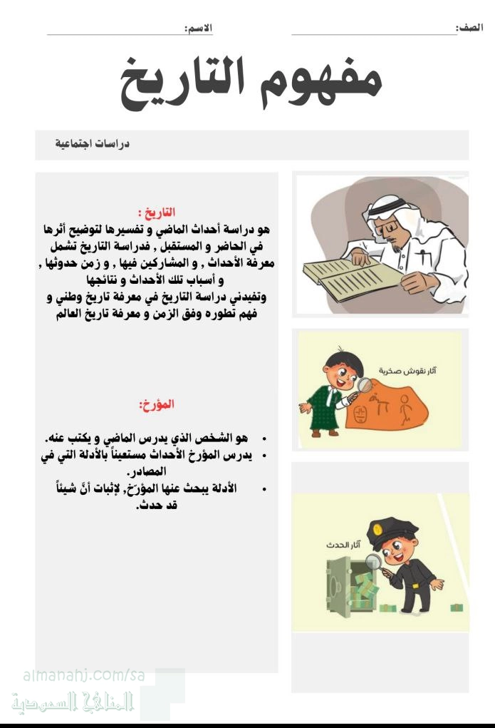 مطوية درس مفهوم التاريخ, الصف الرابع, اجتماعيات, الفصل الأول, 1447_1448 - المناهج السعودية