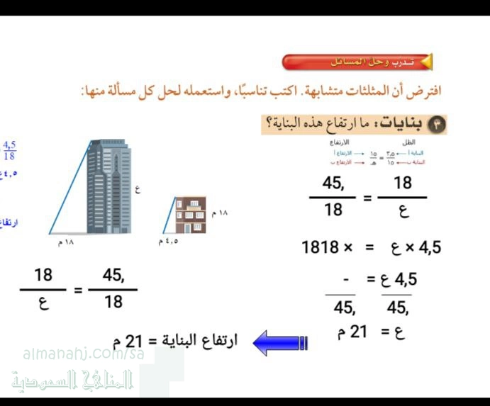 3. الصف الثاني المتوسط, رياضيات, عرض بوربوينت لدرس القياس غير المباشر تدرب مع الحل